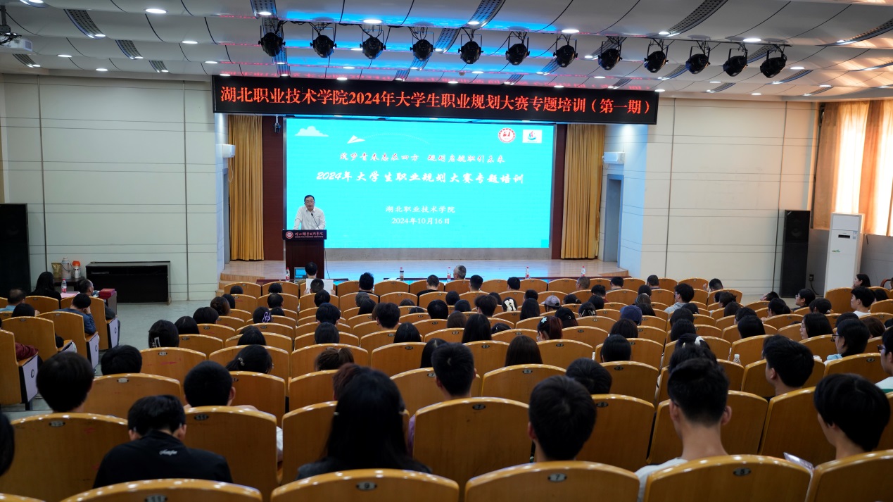 (本网讯 江一帆)为增强学生生涯规划意识,提升学生职业规划能力,全力做好2024年大学生职业规划大赛工作,10月16日下午,2024年大学生职业规划大赛专题培训在学校西区文博馆举行。本次活动由招生与就业创业指导处副处长艾欢主持,学校党委委员、副校长梅重出席,各二级学院学工副院长、专(兼)职辅导员、学生代表等参加了第一期培训班学习。