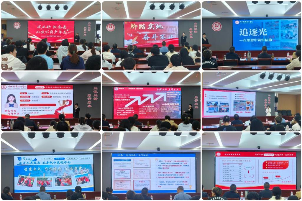 答辩会分为推荐对象PPT个人展示、现场答辩和评委现场评分三个环节。各推荐对象分别从专业学习、获奖情况、志愿服务、综合素养、榜样示范等方面展示自己的成果与收获,展现了湖职学子勤奋好学、全面发展的精神风貌。
