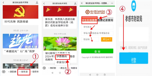 扫码关注湖北职业技术学院微信公众号,点选“微生活”、“学费缴纳”,根据提示完成学杂费缴纳(出现“孝感市财政局”字样即可缴费)。