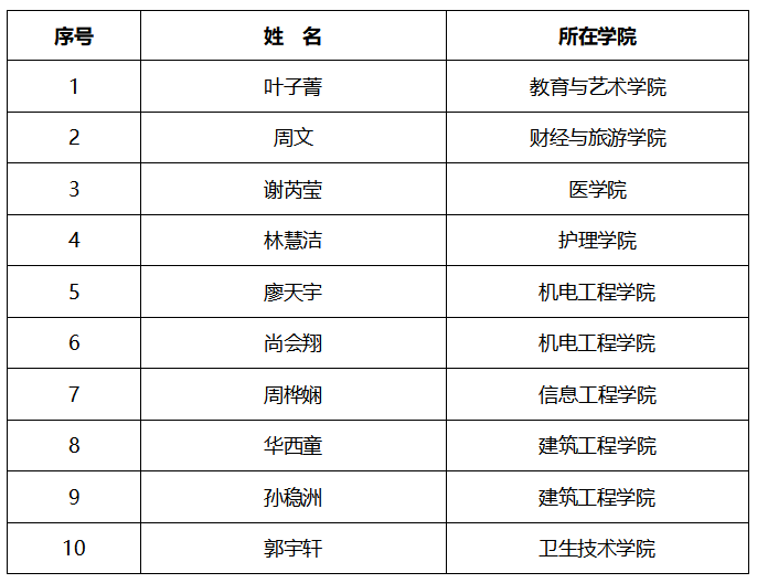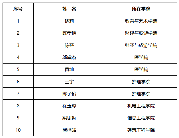 二、团学干部标兵(10人)