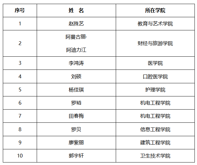 一、德技并修标兵(10人)