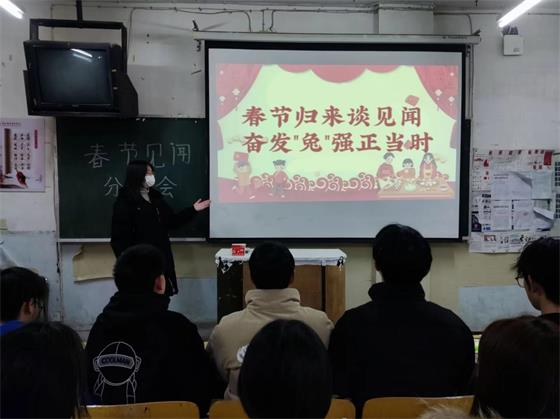 (本网通讯员:张星月)为进一步加强班风学风建设,增进同学们之间的沟通交流,了解不同地区的春节习俗、家乡变化。2月12日晚,财经与旅游学院各班级开展了“春节归来谈见闻,奋发‘兔’强正当时”主题报告活动。