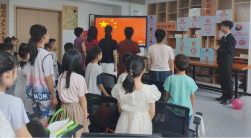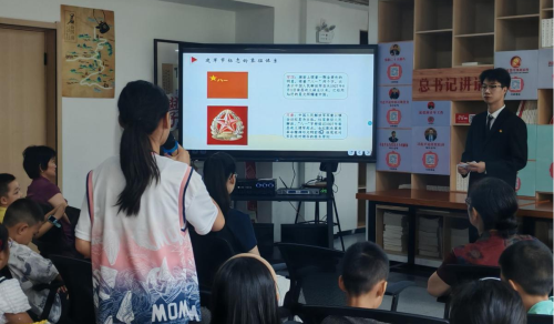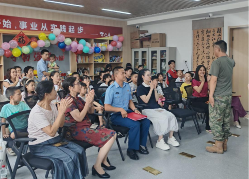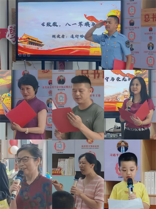 (本网讯 洪雨溪)8月1日,湖北职业技术学院财经与旅游学院“锋”华正茂志愿服务队联合孝感市孝南区广场街道晒书台社区、孝南区朗诵艺术家协会、孝南区青年志愿者协会、孝感朗读者,在书山居爱心托管班开展“传承红色基因,致敬铁血军魂”朗诵会主题活动,带领现场人员回顾人民军队光辉历程,汲取奋进力量。